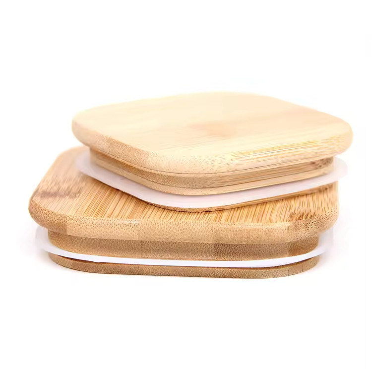 কারখানার কাস্টম লোগো সলিড কাঠের বোতল কাঠের বৃত্তাকার বর্গাকার কাপ কাপ ঢাকনা জার জন্য বাঁশ কভার